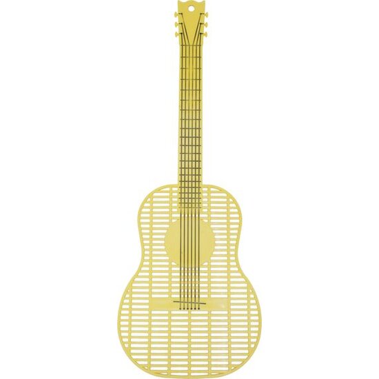 Μυγοσκοτώστρα σε σχήμα κιθάρας κατασκευασμένη από ευέλικτο πλαστικό με περίπου 100 τρύπες για να μην σας ξεφεύγει κανένα έντομο.
