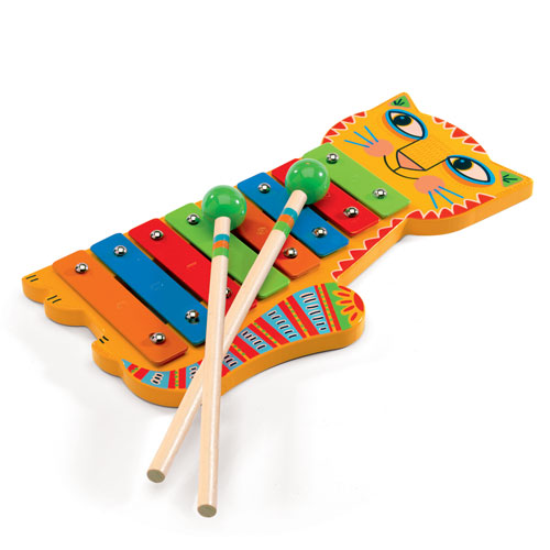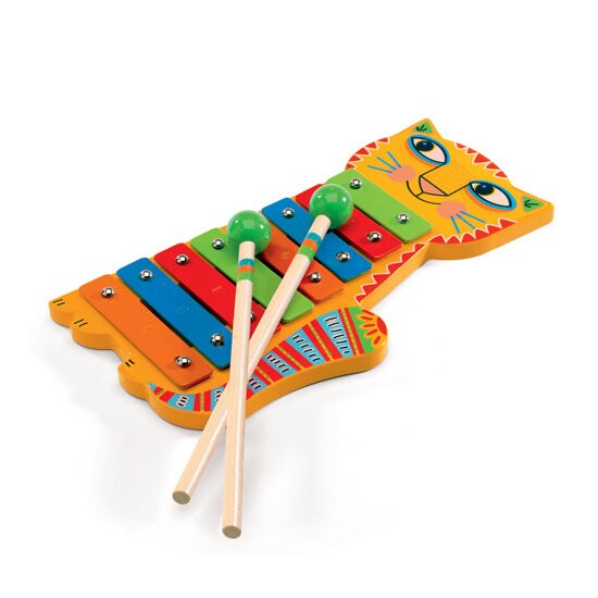 Το μεταλόφωνο γατούλα της εταιρίας Djeco οδηγεί τους μικρούς φίλους της μουσικής σε έναν κόσμο γεμάτο νότες! Κατασκευασμένο από μασίφ ξύλο καουτσούκ δέντρου και χρώματα μη τοξικά. Κατάλληλο από 3 ετών και άνω.
