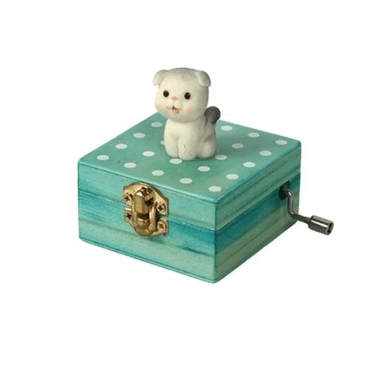 Κλασικό μουσικό κουτί με γατούλα. Το ξύλινο κουτί βοηθά τον ήχο να διαχέεται στον χώρο και να έχετε καλύτερη ακουστική. Γυρίστε το έμβολο και θα ακούσετε την μελωδία. Ένα δώρο για μικρούς αλλά και μεγάλους! Κατάλληλο από 6 ετών και άνω.