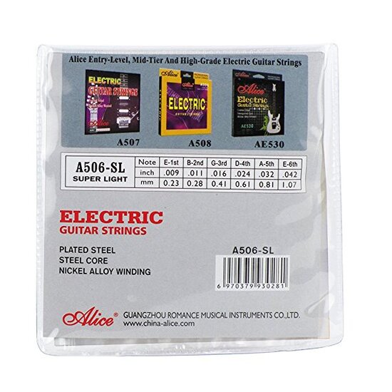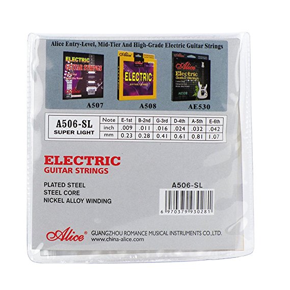 Χορδές ηλεκτρικής κιθάρας Alice. Πάχος χορδών σε ίντσες: 009, 011, 016, 024, 032, 042