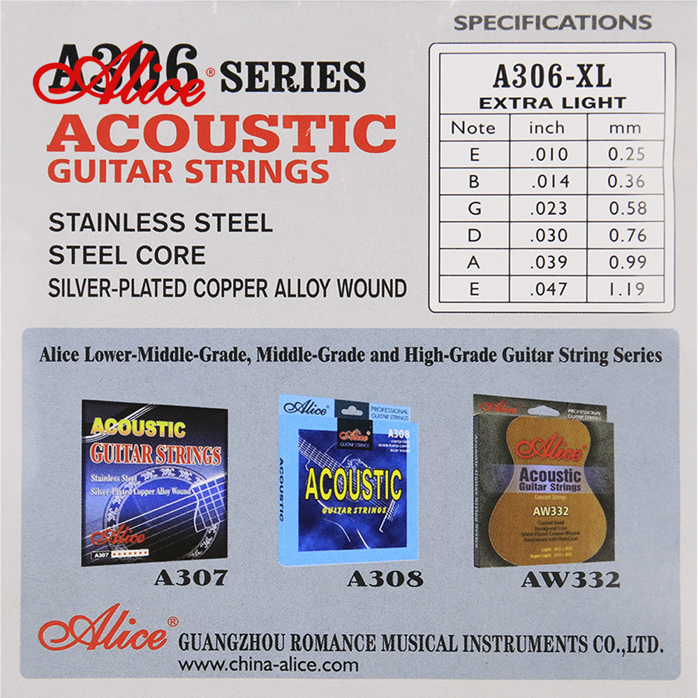 Χορδές ακουστικής κιθάρας Alice 010-048. Η κάθε χορδή είναι σε ατομική, σφραγισμένη συσκευασία