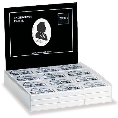 Γόμα άσπρη με παρτιτούρα του Chopin. Η τιμή αφορά τεμάχιο.