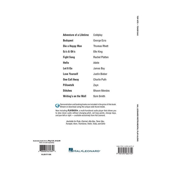 Play-Along: Top Hits Τενόρο Σαξόφωνο (Book/Online Audio) Hal Leonard Instrumental