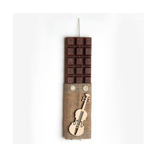 Μοναδικές χειροποίητες λαμπάδες με μουσικό θέμα που μόνο στο musicmarket θα βρείτε. Χειροποίητη πασχαλινή λαμπάδα με αρωματικό κερί σε σχήμα σοκολάτας, διακοσμημένη με ύφασμα από λινάτσα και στολίδι βιολί.