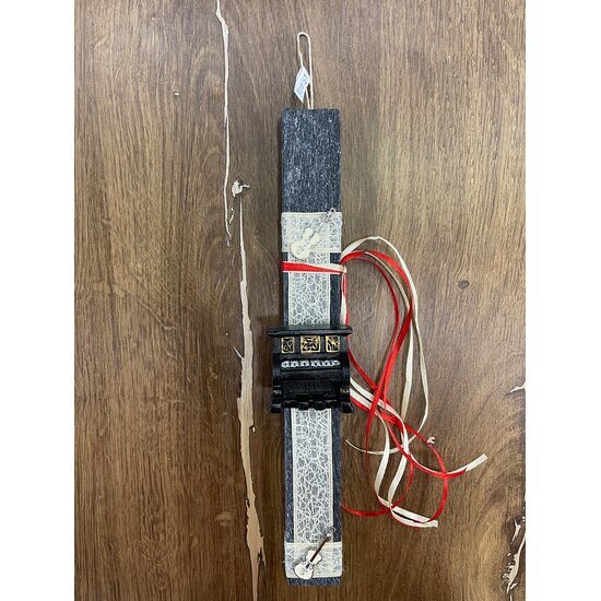 Χειροποίητες πασχαλινές λαμπάδές με πλακέ αρωματικό κερί επάνω σε ξύλινη εκτυπωμένη βάση, διακοσμημένες με νότες και μουσικά όργανα.