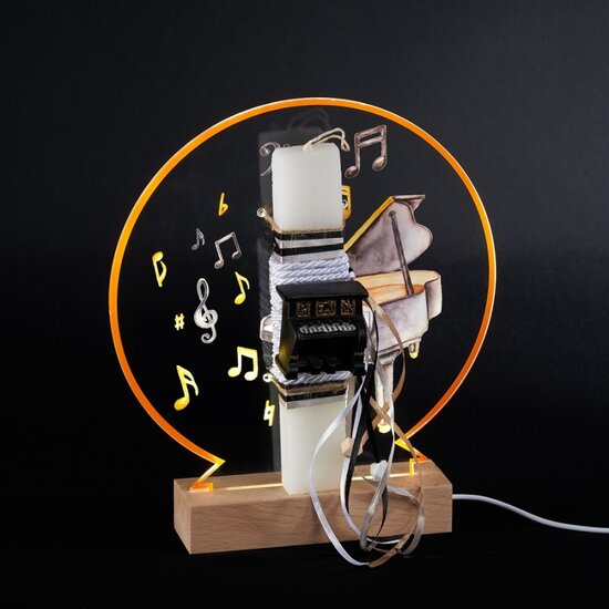Για τον νονό που ψάχνει την πιο ιδιαίτερη λαμπάδα, θα την βρει μόνο στο Musicmarket. Χειροποίητη πασχαλινή λαμπάδα με θέμα την μουσική, σε plexiglass stand, με φωτιζόμενη βάση led.
