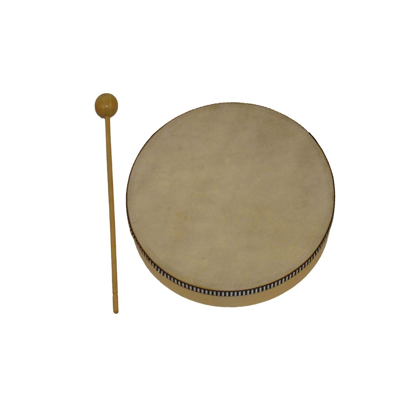 Ταμπουρίνο ξύλινο 8'' με δέρμα και κοπανάκι. Ιδανικό για παιδιά.