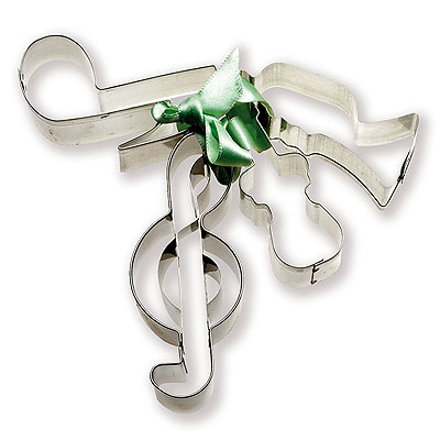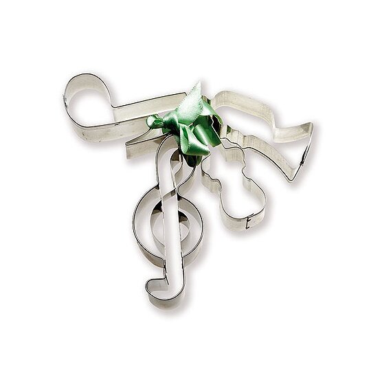Ενθουσιάστε τα παιδιά και τους φίλους σας με μουσικά μπισκοτάκια. Τώρα μπορείτε να τα φτιάξετε κι εσείς με αυτές τις τέσσερις φόρμες που είναι σε διάφορα μουσικά σχέδια. Τα σχέδια είναι: τρομπέτα, κλειδί σολ, νότα, κιθάρα.