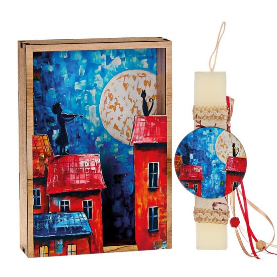 Πρωτότυπες και μοναδικές λαμπάδες με μουσικό θέμα μόνο στο musicmarket θα βρείτε στην μεγαλύτερη ποικιλία. Σετ χειροποίητη πασχαλινή λαμπάδα συνοδευόμενη από ξύλινο καδράκι με εκτυπωμένο θέμα “Φεγγάρι και παραμυθένια πόλη”. Μοναδικές λαμπάδες που θα εντυπωσιάσουν τους αποδέκτες τους.Η συσκευασία δώρου περιλάμβάνει χαρτί αφής, εορταστική τσάντα και κορδέλα