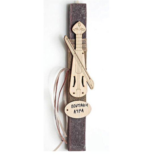 Πρωτότυπες και μοναδικές λαμπάδες με μουσικό θέμα μόνο στο musicmarket θα βρείτε στην μεγαλύτερη ποικιλία. Χειροποίητη πασχαλινή λαμπάδα με καφέ πλακέ αρωματικό κερί, διακοσμημένη με κορδέλες και ξύλινο διακοσμητικό ποντιακή λύρα.