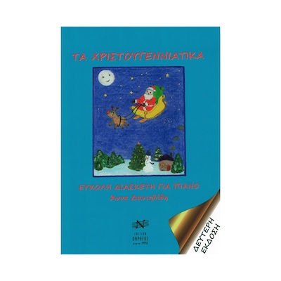 Το βιβλίο αποτελείται από 22 γνωστά χριστουγεννιάτικα τραγούδια σε εύκολες μεταγραφές για πιάνο. Απευθύνεται σε παιδιά μικρών τάξεων. Περιεχόμενα Τρίγωνα, κάλαντα Ο μικρός τυμπανιστής Κάλαντα Χριστουγέννων Κάλαντα Πρωτοχρονιάς Κάλαντα Κρήτης Κάλαντα Ικαρίας Κάλαντα Πελοποννήσου Κάλαντα Μακεδονίας Χιόνια στο καμπαναριό Κάλαντα Φώτων Πάει ο παλιός ο χρόνος Ω! Έλατο Άγια νύχτα We wish you me Merry Christmas Deck the halls Ο Άγιος Βασίλης (Santa Claus) Ρούντολφ, το ελαφάκι God rest you merry, gentlemen Carol of the bells (για 4 χέρια) Baby Christmas / Άστρο φωτεινό Baby Christmas / Κάλαντα Χριστουγέννων Baby Christmas / Κάλαντα Πρωτοχρονιάς Σελίδες: 30Γλώσσα: ΕλληνικάΕκδόσεις: Edition Orpheus