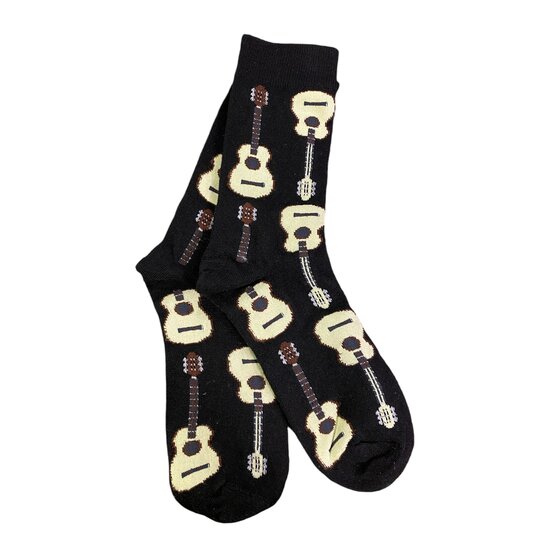 Ένα ζευγάρι κάλτσες για όλους τους λάτρεις της κιθάρας. Είναι μαύρες και έχουν πολύχρωμες κιθάρες. Η σύνθεση τους είναι 72% Cotton, 25% Nylon και 3% Lycra. Είναι one size και unisex.
