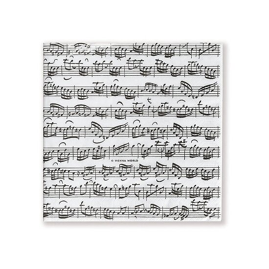 Πρωτότυπες χαρτοπετσέτες πολυτελείας με παρτιτούρα για να εντυπωσιάσετε τους καλεσμένους σας. Το μέγεθός τους είναι 33 εκατοστά x 33 εκατοστά. Κάθε πακέτο έχει 20 χαρτοπετσέτες.