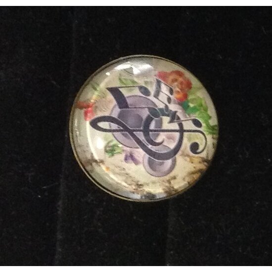 Χειροποίητο δαχτυλίδι . Κάνει σε όλα τα δαχτυλα καθώς μπορείτε να αυξομειώσετε το μέγεθός του. Είναι από γυαλί με εικόνα νότες και κλειδί σολ σε λιλά χρωματισμούς. Η περίμετρός του είναι  2,50 εκατοστά. Ένα ιδιαίτερο δαχτυλίδι σε μπρονζέ χρώμα για όλους τους λάτρεις  της μουσικής.