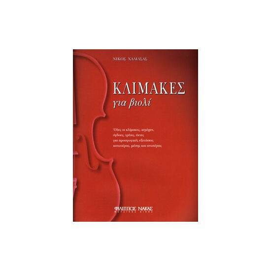 Κλίμακες για βιολί από τον Χαλιάσας Νίκος.Όλες οι κλίμακες,arpeges,όγδοες,τρίτες,έκτες για προαγωγικές εξετάσεις κατωτέρας,μέσης και ανωτέρας.