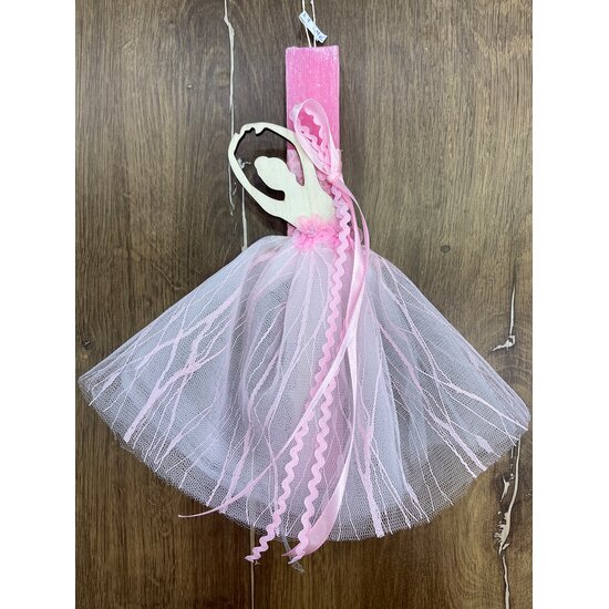 Επιλέξτε μέσα από την μεγάλη ποικιλία μας την λαμπάδα που σας ταιριάζει. Χειροποίητη πασχαλινή λαμπάδα με πλακέ αρωματικό κερί πάνω σε ξύλινη τυπωμένη βάση, με κορδέλες και θέμα την μπαλαρίνα.