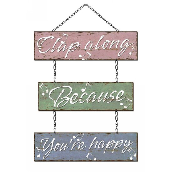 Τώρα μπορείτε να δώσετε μία μουσική νότα στο σπίτι σας επιλέγοντας διακοσμητικά από την μεγάλη ποικιλία μας. Αυτό το ξύλινο επιτοίχιο διακοσμητικό θα σας φτιάχνει την διάθεση κάθε φορά που θα το βλέπετε. Clap Along Because you' re Happy αυτό είναι το θετικό μήνυμα που γράφει πάνω στο διακοσμητικό.