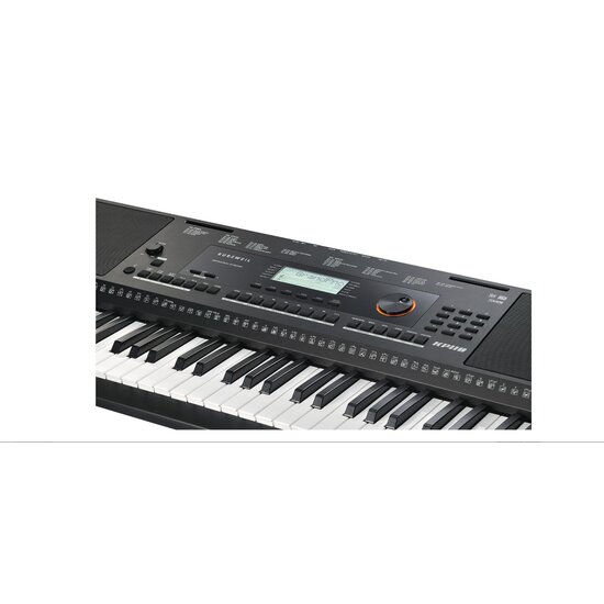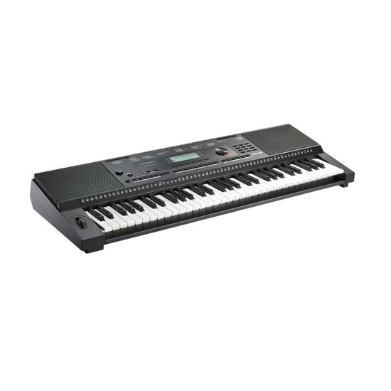 Αρμόνιο με 61 δυναμικά πλήκτρα. 653 ήχοι, 240 ρυθμοί με αυτόματα ακκομπανιαμέντα,λειτουργία με τροφοδοτικό ή με μπαταρίες, κλαβιέ με 3 επίπεδα ευαισθησίας, 128 νότες πολυφωνία, pitch bend, οθόνη υγρών κρυστάλλων πολλαπλών ενδείξεων, λειτουργία split/layer. Διαθέτει ενσωματωμένο sequenser με 6 κανάλια εγγραφής, ψηφιακά εφέ (EQ, reverb&chorus), 2 ηχεία 10W, Audio και MIC εισοδους, έξοδο ακουστικών και εξόδους για σύνδεση με εξωτερικό σύστημα ενίσχυσης και θύρα USB to MIDI. Περιλαμβάνονται στη συσκευασία το τροφοδοτικό και το αναλόγιο. Χρώμα μαύρο. Βάρος 5,3Kg.