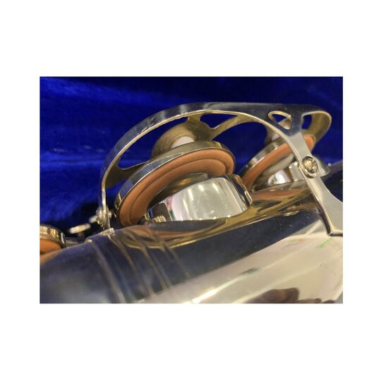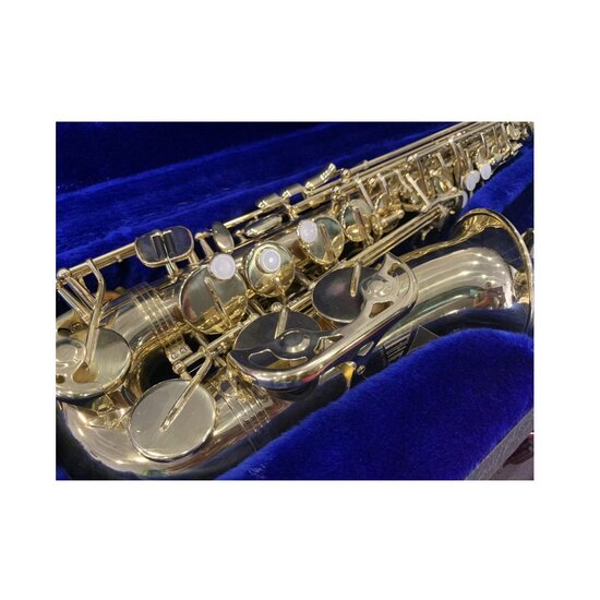 Μεταχειρισμένο Άλτο Σαξόφωνο Trevor James the Horn σε άριστη κατάσταση. Έγινε καθαρισμός, απολύμανση καθώς και αντικατάσταση φθαρμένων μερών. Ένα επιτυχημένο μοντέλο της Trevor James σε πολύ προσιτή τιμή. Διαθέτει μηχανισμό ψηλού F#.  Δίδεται με εγγύηση καλής λειτουργίας του μηχανισμόυ 3 μηνών. Συμπεριλαμβάνεται το επιστόμιο με τον σφύγκτήρα και το καπάκι (δεν φαίνονται στις παραπάνω φωτογραφίες). Το πανί καθαρισμού ΔΕΝ συμπεριλαμβάνεται.