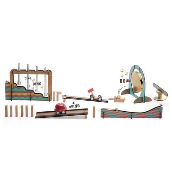Η σειρά ντόμινο της εταιρίας Djeco ήρθε για να συναρπάσει! Το σετ 52 τεμαχίων Zig & Go περιλαμβάνει στοιχεία που παράγουν ήχο. Ένα εξαιρετικό παιχνίδι για την εισαγωγή των παιδιών σε έννοιες STEM, όπως η βαρύτητα, η δύναμη και η ορμή και πως αυτές μπορούν να προκαλέσουν μια αλυσιδωτή αντίδραση. Το σετ καλλιεργεί δεξιότητες όπως η επιμονή, η επίλυση προβλημάτων και η κριτική σκέψη. Το παιχνίδι μέσα από τον ιδιαίτερο σχεδιασμό του συνδυάζει την εκπαίδευση με τη διασκέδαση. Το παιδί δημιουργεί, χρησιμοποιώντας τη φαντασία του ή με τη βοήθεια του βιβλίου που περιέχεται εντός της συσκευασίας. Περιεχόμενα: 1 ξύλινο παιχνίδι κατασκευών με 52 κομμάτια, συμπεριλαμβανομένων 3 μεταλλικών και 3 ξύλινων μπιλιών και ένα φυλλάδιο οδηγιών 24 σελίδων. Κατάλληλο για ηλικίες από 8 ετών και άνω. Διαστάσεις Συσκευασίας: 33 x 25 x 5 εκ.
