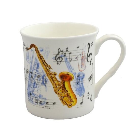 Μία ξεχωριστή κούπα με το αγαπημένο σας μουσικό όργανο. Κούπα με ζωγραφισμένα σαξόφωνο και νότες. Ιδανικό για δώρο καθώς έρχεται σε συσκευασία δώρου
