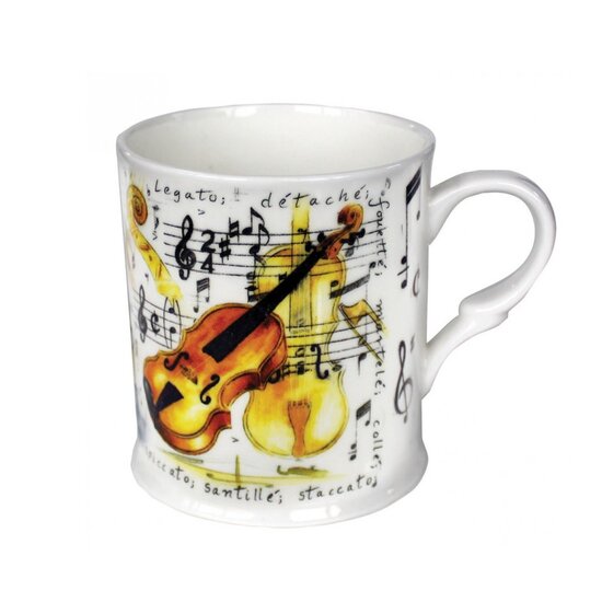 Μία ξεχωριστή κούπα με το αγαπημένο σας μουσικό όργανο. Κούπα με ζωγραφισμένα βιολιά και νότες. Ιδανικό για δώρο καθώς έρχεται σε συσκευασία δώρου