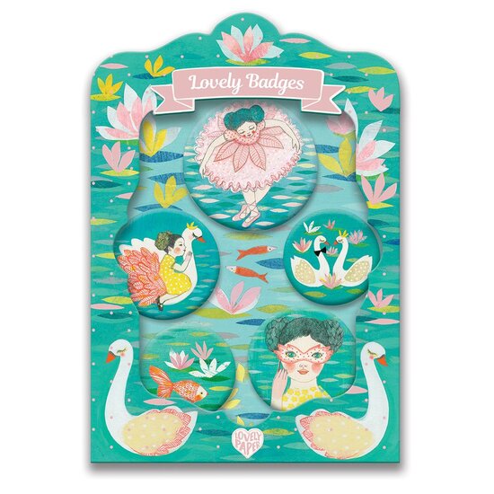 Υπέροχες κονκάρδες με θέμα την μπαλαρίνα, έρχονται να συμπληρώσουν τη συλλογή Lovely Badges της εταιρείας Djeco. Το σετ αποτελείται από πέντε μεταλλικές καρφίτσες σε 3 διαφορετικά μεγέθη (4.5cm, 3.8cm και 3.2cm) Αυτές οι χαριτωμένες κονκάρδες είναι το τέλειο αξεσουάρ για να διακοσμήσετε τα ρούχα ή την τσάντα ή ακόμα κι ένα δώρο σας. Κατάλληλο από 5 ετών και άνω.