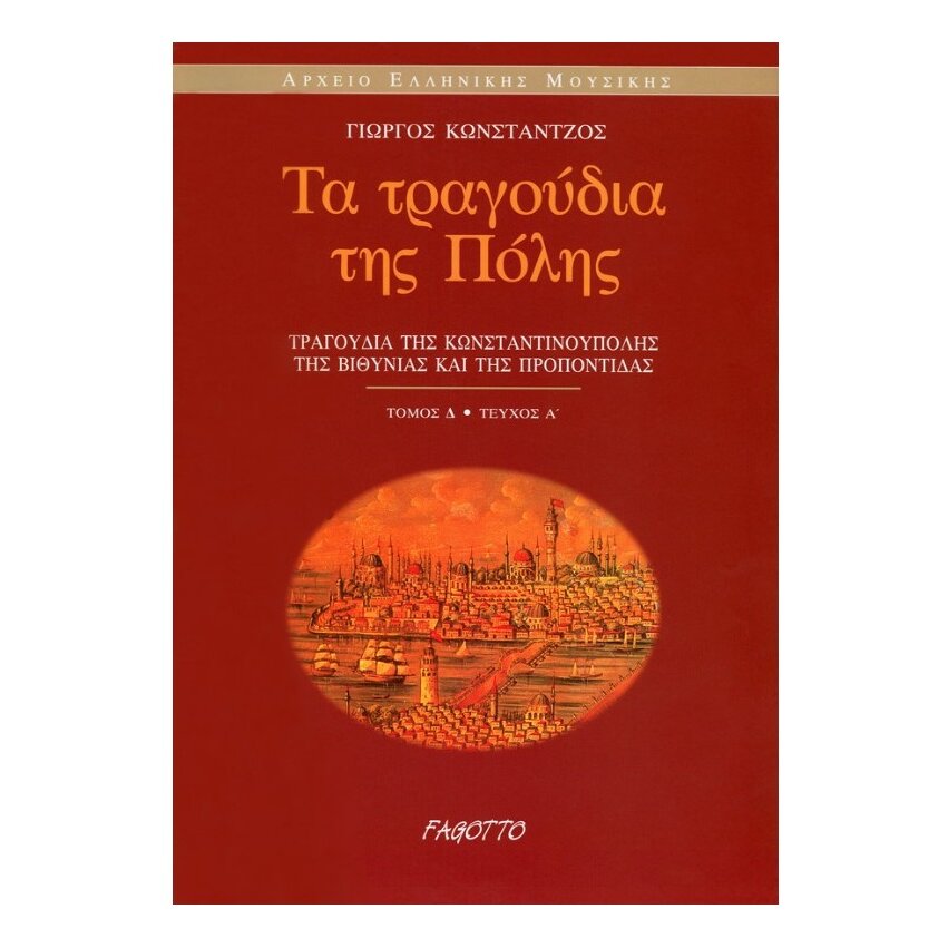 Στον Τέταρτο Τόμο συμπεριλάβαμε τραγούδια από την Κωνσταντινούπολη, την Προποντίδα και τη Βιθυνία. Δεν υπάρχει ασφαλές κριτήριο για τον αν ένα αστικό τραγούδι ξεκίνησε από την Κωνσταντινούπολη ή τη Σμύρνη. Έτσι μελετήθηκαν διάφορες παράμετροι, όπως η μελωδική του ομοιότητα με τις Μισμαγιές, ο μουσικός δρόμος που ακολουθούν -μια και κάποιοι ήχοι (όπως ο βαρύς) είναι περισσότερο συνηθισμένοι στην Πόλη παρά τη Σμύρνη- το περιεχόμενο του στίχου, που μερικές φορές αναφέρεται σε συγκεκριμένα τοπωνύμια (Γαλατάς, Σταυροδρόμι, Ταύταλα κλπ.), οι πρώτες μουσικές ηχογραφήσεις και η καταγωγή των τραγουδιστών τους. Ακόμη μελετήθηκε η αναγραφή τους σε διάφορα μουσικά έντυπα της εποχής (Φόρμινγξ, Εκκλησιαστική Αλήθεια κ.α.), η διάδοσή τους σε περιοχές γύρω από την Πόλη, σε σύγκριση με τα χωριά έξω από τη Σμύρνη, και τέλος οι προσωπικές μαρτυρίες καλλιτεχνών και μελετητών της εποχής εκείνης αλλά και συγχρόνων όπως ο Σίμων Καράς, ο Χρόνης Αηδονίδης κ.α. (...)