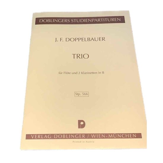Παρτιτούρα Trio για φλαουτο και 2 κλαρινέτα του συνθέτη J.F.Doppelbauer Stp.566 εκδόσεις Verlag Doblinger. Σελίδες 23, μέγεθος βιβλίου 14 x 19 εκατοστά.
