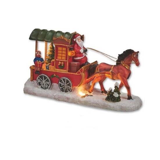 Διακοσμήστε το σπίτι σας αυτά τα Χριστούγεννα με μοναδικά αντικείμενα που αναπαράγουν χριστουγενιάτικη μουσική. Άμαξα με τον Άγιο Βασίλη με μουσική και φως με μέγεθος 27 x 15 x 9 εκατοστά.