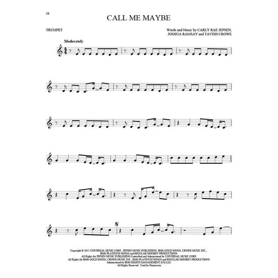 101 Hit Songs για Τρομπέτα από τις εκδόσεις Hal Leonard. Σελίδες 160. Περιεχόμενα: