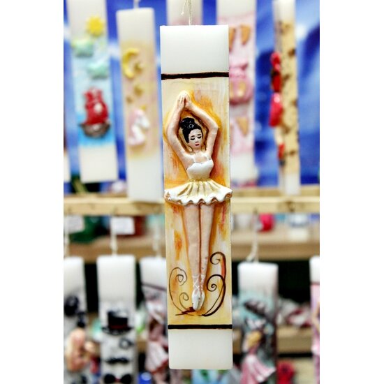 Πασχαλινή λαμπάδα Πλακέ με μπαλαρίνα εκρού
