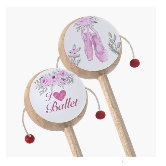 Ξύλινο natural τυμπανάκι με αυτοκόλλητο print πουέντ μπαλαρίνας σε ροζ απόχρωση με διαφορετικό σχέδιο μπρος-πίσω. Τα τυμπανάκια έχουν αυτοκόλλητο και στις 2 όψεις. Η τιμή αφορά τεμάχιο.