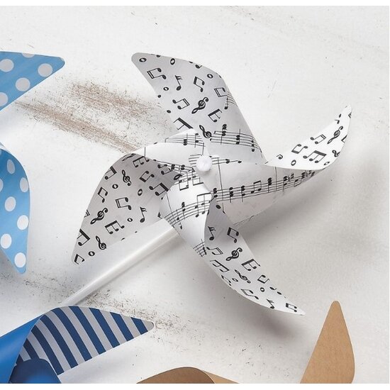 Χάρτινος διακοσμητικός ανεμόμυλος με πλαστικό stick. Print διπλής όψεως σε λευκό φόντο με θέμα νότες.