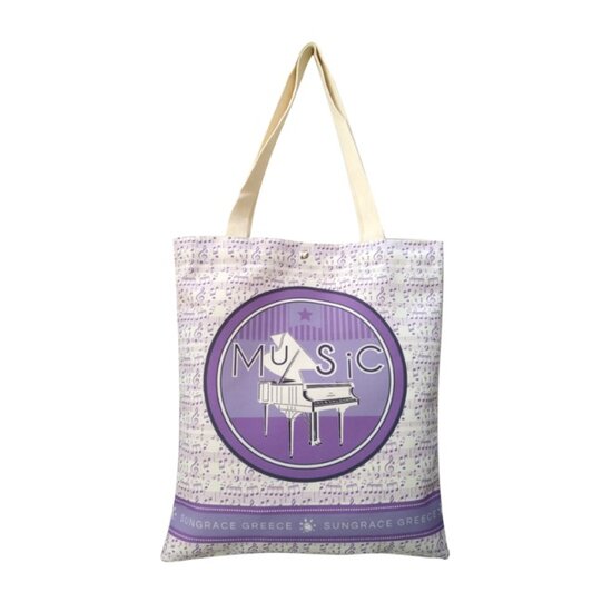 Διαλέξτε την τσάντα που σας αρέσει μέσα από την μεγαλύτερη ποικιλία Πανελλαδικά. Τσάντα σε μωβ χρωματισμούς με πιάνο από καμβά. Το μέγεθός της είναι 34×39 εκατοστά.