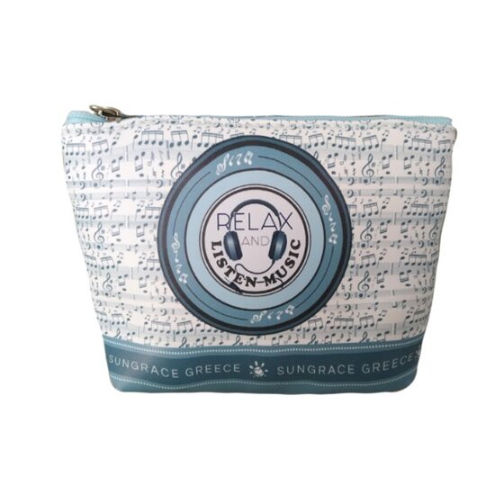 Ένα πορτοφολάκι που σίγουρα είναι η ιδανική επιλογή για δώρο στους φίλους μουσικούς σας ή και για προσωπική χρήση. Το μέγεθός του είναι 12×8 εκατοστά και κλέινει με φερμουάρ στο πάνω μέρος του. Είναι από τεχνόδερμα με σχέδιο ακουστικά σε βεραμάν χρωματισμούς.