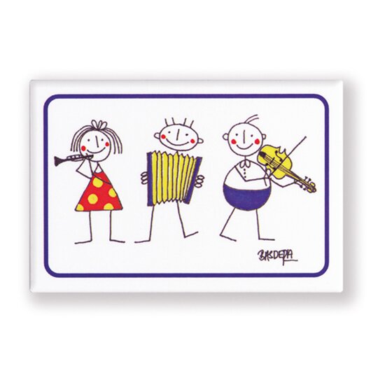 Το μαγνητάκι Little Philharmonics είναι ένα ιδιαίτερο αξεσουάρ για κάθε λάτρη της μουσικής.Το μοτίβο απεικονίζει τρία παιδιά να παίζουν βιολί, ακορντεόν και φλάουτο, σκορπίζοντας μια χαρούμενη μουσική ατμόσφαιρα. Το μαγνητάκι δεν είναι μόνο ένα είδος διακόσμησης για το ψυγείο σας ή για άλλες μαγνητικές επιφάνειες, αλλά και πρακτικό καθώς μπορείτε να τοποθετείτε με ασφάλεια σημειώσεις, φωτογραφίες ή και την λίστα αγορών σας.