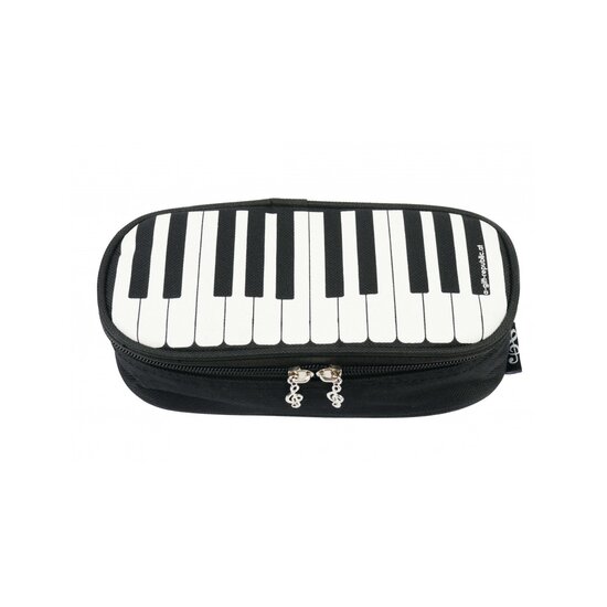 Κασετίνα μεγάλη με κλαβιέ πιάνου. Ασπρόμαυρη με λεπτομέρεια κλειδάκια του σολ στο φερμουάρ. Το μέγεθός της είναι 21 x 11 x 6 εκατοστά.