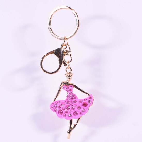Μπρελόκ με Μπαλαρίνα χρυσή με Φούξια φόρεμα με στρας. Για τις αγαπημένες σας μπαλαρίνες ένα δώρο που θα λατρέψουν. Το μέγεθός της είναι 4 x4 x 4 εκατοστά.
