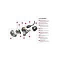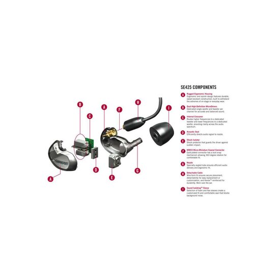 Δύο δρόμων, σε διαφανές χρώμα, με αποσπώμενο καλώδιο. Εργονομικά ακουστικά μικρού διαφράγματος, με τέλεια ηχητική απομόνωση, προσφέρουν υψηλή πιστότητα αναπαραγωγής σε οποιαδήποτε τύπο ακουστικής πηγής, είτε πρόκειται για φορητό (ipod , mp3 players) είτε για επαγγελματικής χρήσης σύστημα.