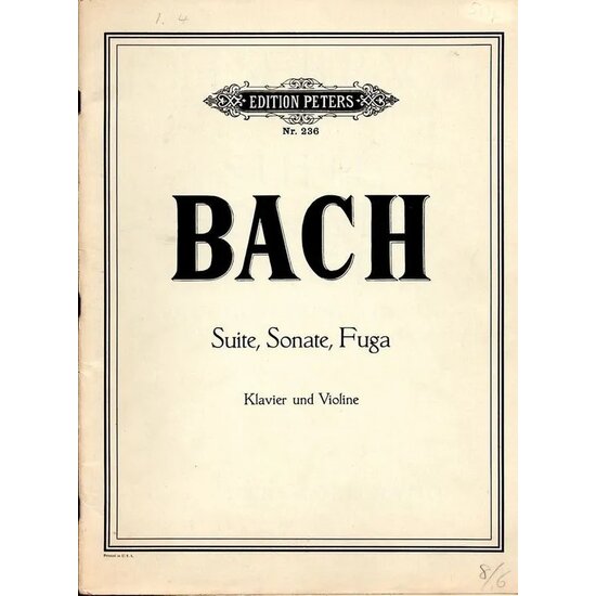 Title Suite, Sonate and Fuga - For Piano and Violin - Edition Peters No. 236