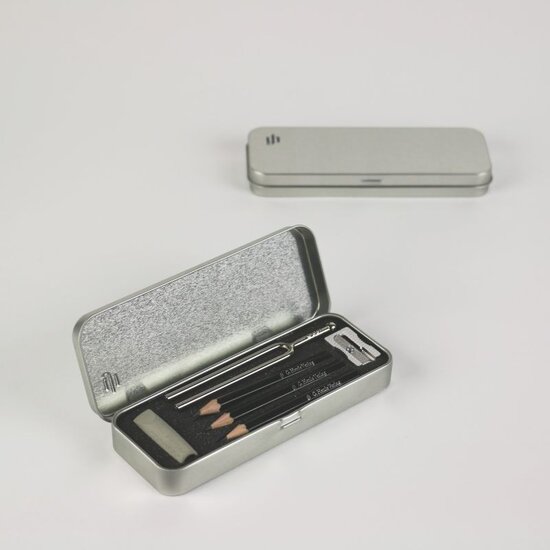 Αυτό το μεταλλικό κουτί περιέχει όλα τα απαραίτητα για να σημειώνετε πάνω στις παρτιτούρες σας κατά τη διάρκεια της μελέτης ή των προβών. Είναι ένας πρακτικός και ανθεκτικός σύντροφος, είτε στο σπίτι είτε εν κινήσει, και περιλαμβάνει επίσης ένα διαπασών. Ένα αποκλειστικό προϊόν της Henle.