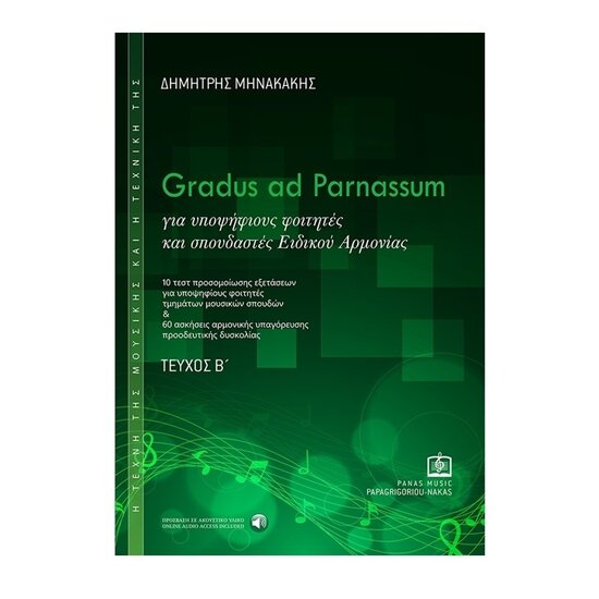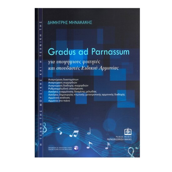 Το καινούργιο μου πόνημα» «Gradus ad Parnassum[ ]» για υποψήφιους φοιτητές και μαθητές Ειδικού Αρμονίας σε συνδυασμό με το «Εγχειρίδιο Ακουστικών Δεξιοτήτων» προσφέρουν σημαντικό βοήθημα ως μέθοδος διδασκαλίας αλλά και αυτοδιδασκαλίας στους υποψήφιους φοιτητές σε Τμήματα Μουσικών Σπουδών, αλλά και τους σπουδαστές Ειδικού αρμονίας και καθηγητές Ανωτέρων Θεωρητικών μαθημάτων.