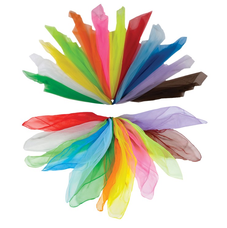 Από πολύ ελαφρύ και ανθεκτικό ύφασμα τα μαντήλια είναι ιδανικά για πολλές διαφορετικές δραστηριότητες: παιχνίδι, δημιουργία, χορός, κίνηση και γενικότερα για την μουσική ή την φυσική αγωγή