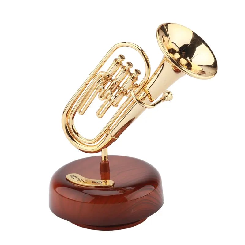 Μουσικό κουτί τρομπέτα. Το υλικό είναι πλαστικό και το μέγεθος είναι 13 x 18 εκατοστά. Απλά κουρδίστε την και εκείνη θα πειρστρέφεται στην μελωδία της μουσικής.