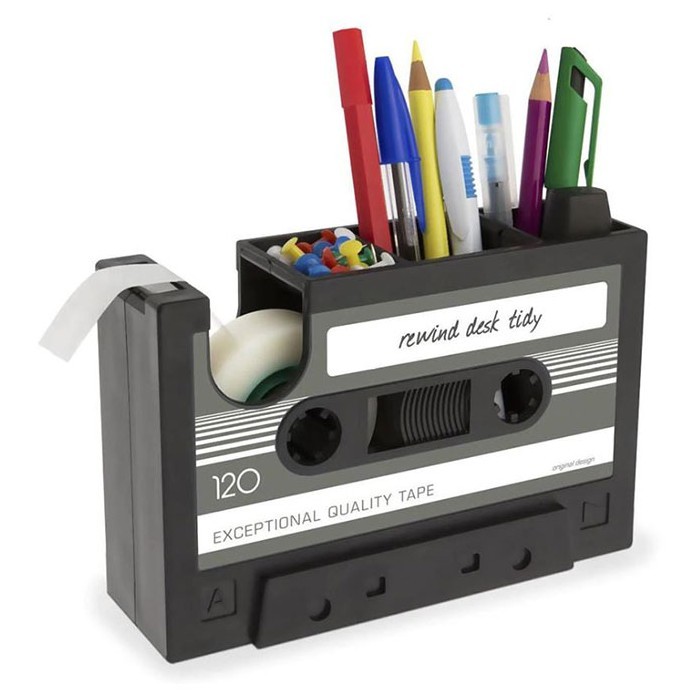 Δώστε μια πιο ρετρό διάθεση στη διακόσμηση του γραφείου σας, κρατώντας το παράλληλα οργανωμένο, με τη μολυβοθήκη με θήκη για σελοτέιπ Cassette 16,8x11x5,2cm. Με την πρακτική αυτή βάση, όχι μόνο θα ανανεώσετε το στιλ του γραφείου σας, αλλά θα έχετε όλη σας τη γραφική ύλη μαζεμένη σε μια μεριά!