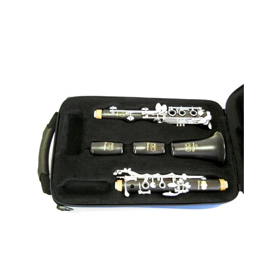 Boehm System , 17 keys, 6 rings, Eb lever, leather pads, silver-plated keys. Two barrels included with different length.